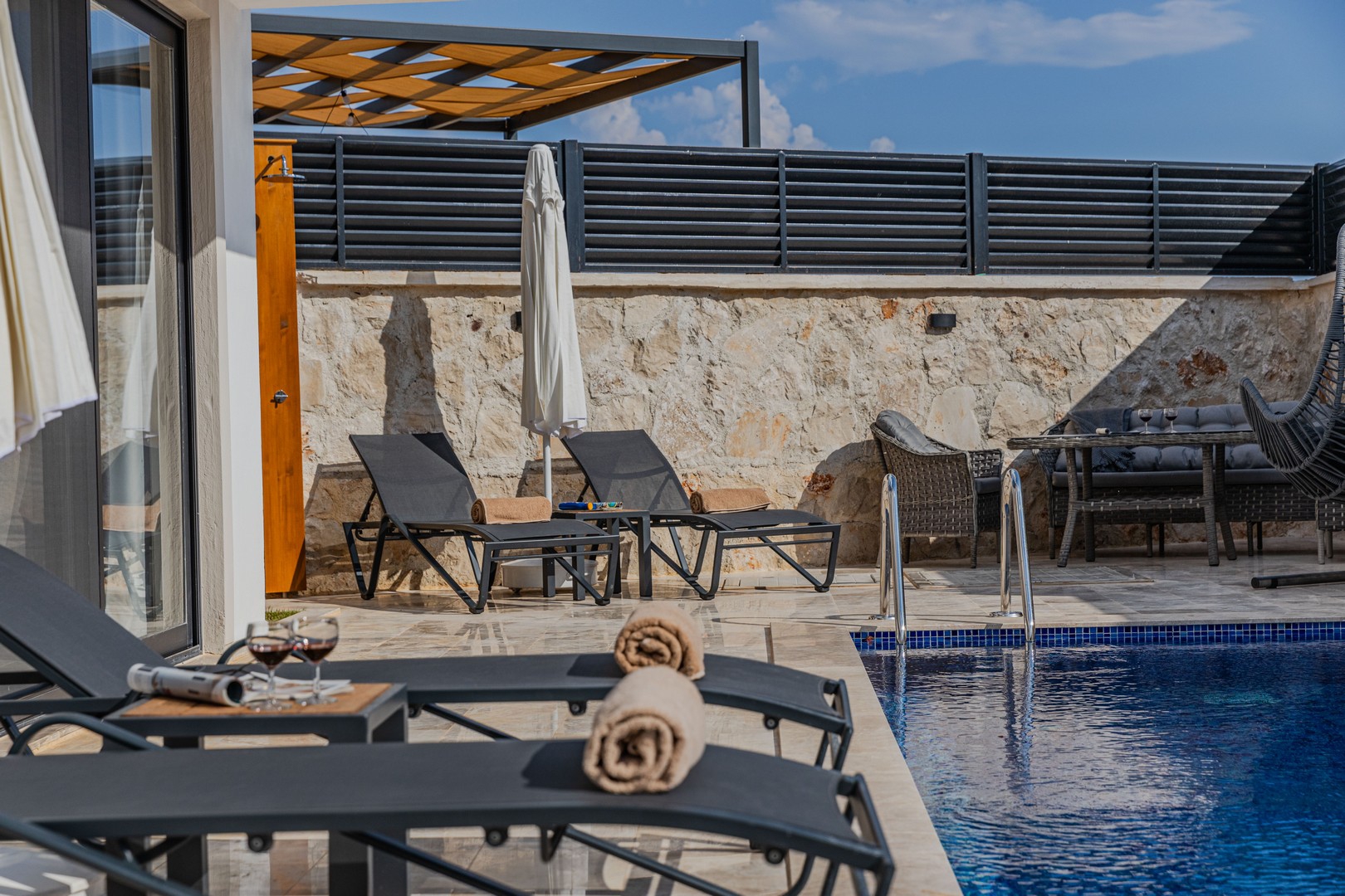 Antalya'nın Kaş Çukurbağ mevkiinde bulunan ve yeni tamamlanan Villa Apollo, 2 yatak odası ve 4 kişi kapasitesiyle lüks bir konaklama deneyimi sunmaktadır. Villanın ana yatak odasında bulunan jakuzisi, konuklara rahat ve lüks bir konaklama imkanı sunmaktad